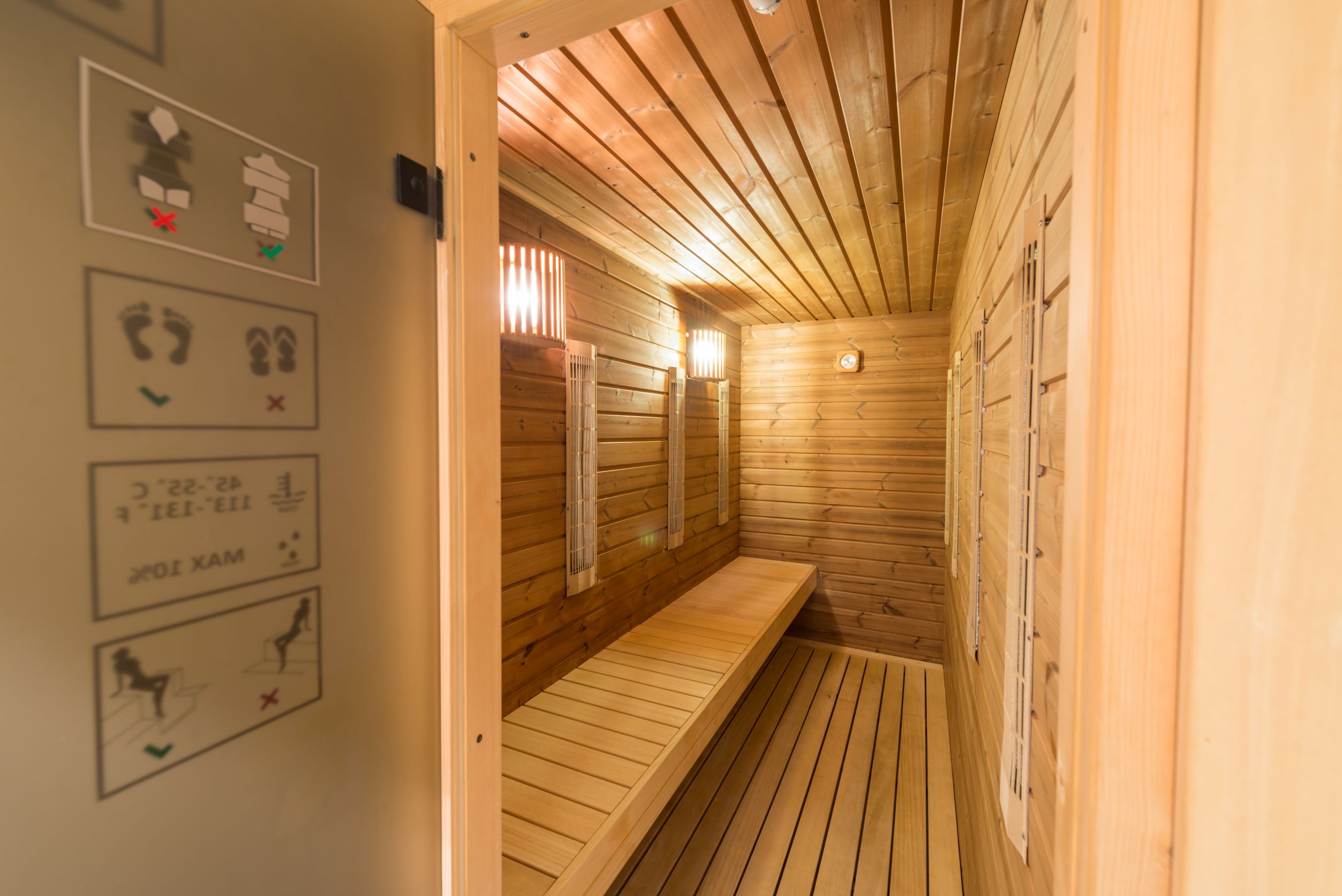 Sauna are o capacitate de maxim 8 persoane în poziţie şezut sau întins.